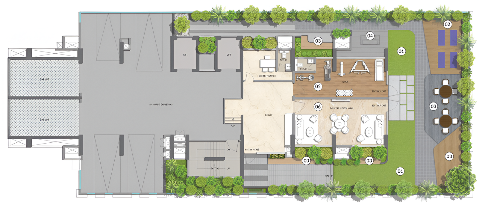 At Kalpataru Verbina, lifestyle spaces are thoughtfully distributed across podium and terrace levels, creating calm, elevated zones away from road-level activity. These areas are designed to balance openness and privacy, offering residents dedicated spaces to relax, socialize, and unwind within a serene, green environment.